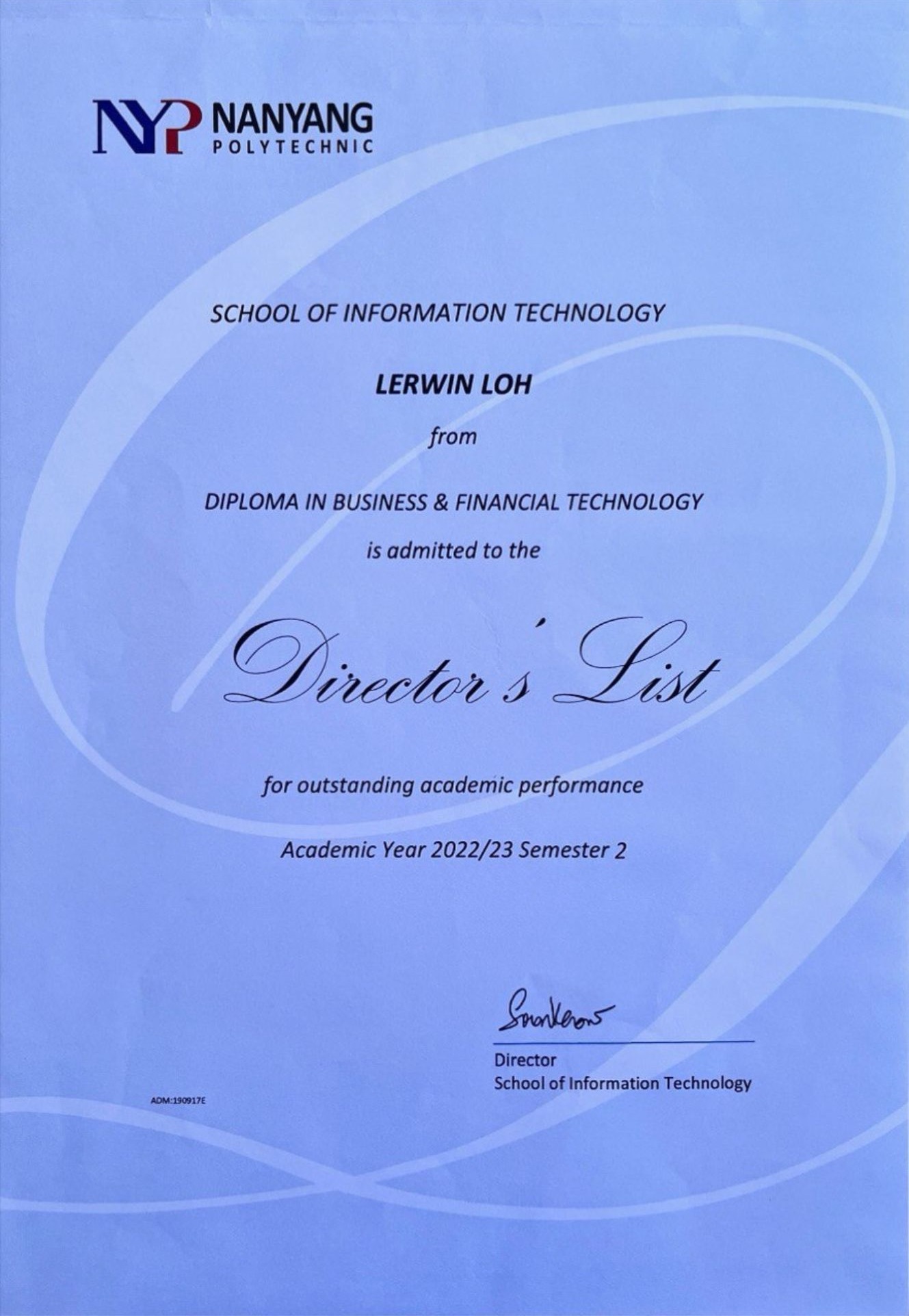 Polytechnic (NYP), topping my cohort 2023. I'd